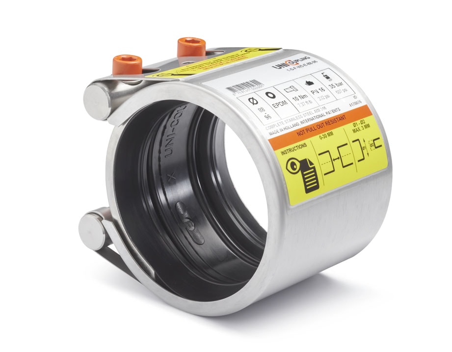De UNI-Flex koppeling wordt gebruikt voor het aansluiten van tegengehouden pijpleidingen. Zowel metalen als kunststof buizen kunnen veilig en snel worden aangesloten en ook de UNI-Flex koppeling serie zelf is gemaakt van hoogwaardig kwaliteit. De buiskoppeling laat het uitzetten en krimpen van de leidingen toe.