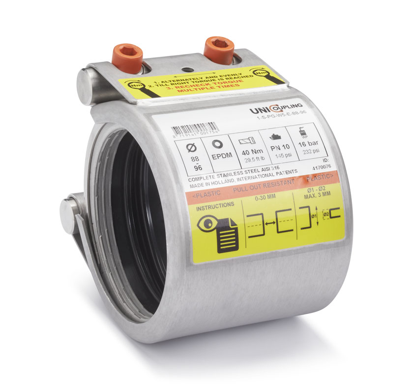UNI-Plastgrip couplings are axial restraint couplings that are used to connect plastic pipes to plastic pipes.