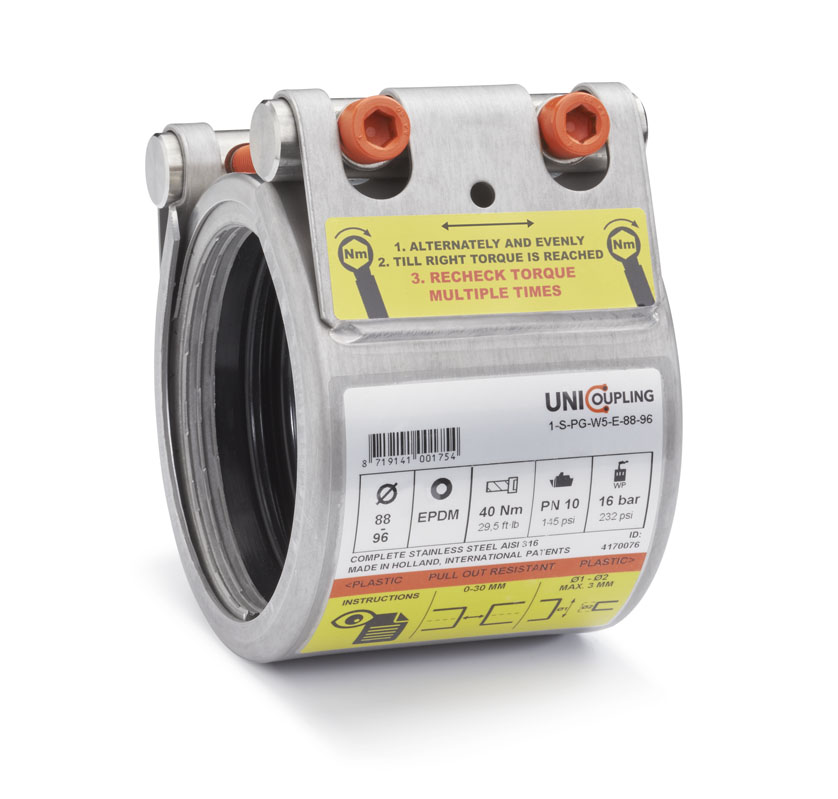 During installation of the coupling compensation beads/grooves are used, therefore the stainless steel insert that is needed in gaskets used by competitors is no longer needed what solves the corrosion problem that comes with these strip inserts.